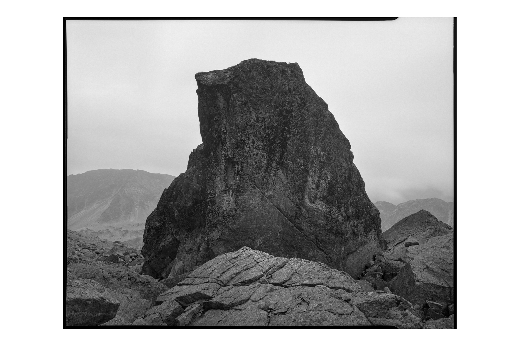 Prace Rafała Swosińskiego są efektem czystej przyjemności: bycia zanurzonym w procesie fotografowania i w krajobrazie. Dla nas obserwatorów fotografie stają się zapisem niemal metafizycznego zawieszenia w bezczasie. Krajobraz jest postrzegany przez Swosińskiego zarówno jako przestrzeń natury jak i ślady ludzkiej obecności. W jego pracach pojawiają się elementy natury, które w oderwaniu od swojej pierwotnej formy nabierają wręcz performatywnych znaczeń budząc w obserwatorach osobiste metafory. Fotografie prezentowane na wystawie są obrazami oszczędnej narracji. Nie opowiadają historii. Ich językiem jest wręcz medytacyjna obserwacja rzeczy prostych: skał, kamieni, drzew, mgły, pustych przestrzeni i abstrakcyjnych form dostrzeżonych w surowym górskim krajobrazie.